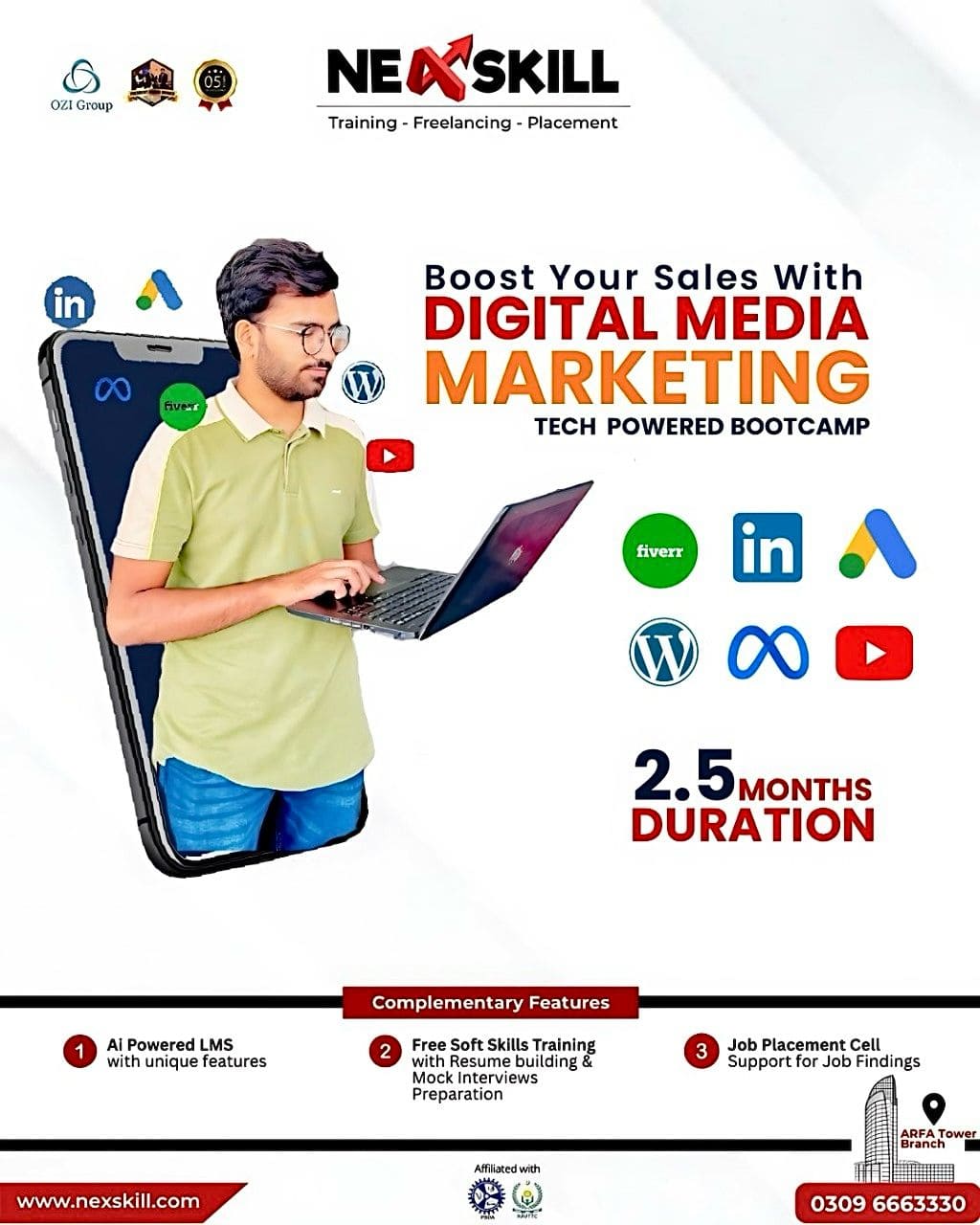 Are you struggling to promote your online business effectively on Google and social media platforms? Many students face challenges understanding how to reach their target audience and drive sales through digital channels. Our Certified Digital Media Marketing in Lahore at Nexskill provides the perfect solution to these common obstacles. This comprehensive program covers essential skills, including SEO techniques, social media strategy, content creation, and online advertising methods.
